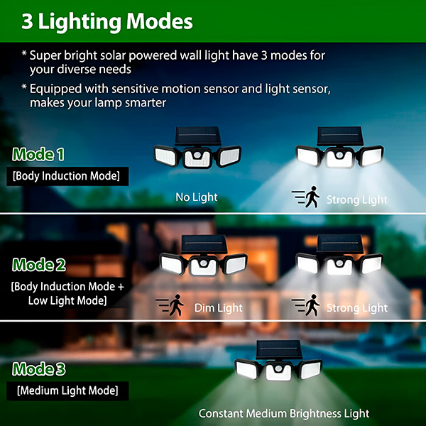 Dritë diellore me tre anë me sensor lëvizjeje | SENSBEAM